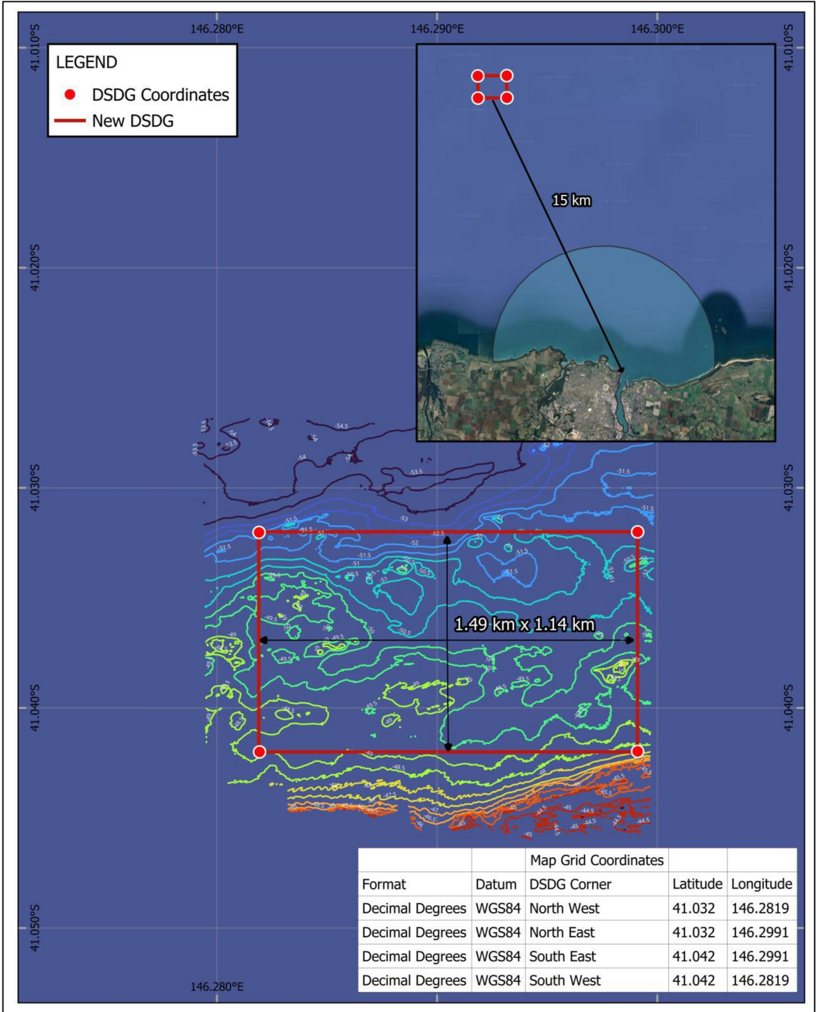 Dredged material will be transported to TasPorts’ approved offshore disposal site, located approximately 15 km north‑west of the Port of Devonport.